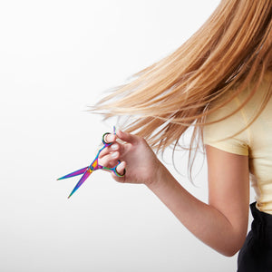 De Matsui Rainbow schaar is een lichte, mooie en elegante schaar gemaakt van hoogwaardig kobaltgegoten staal. Aangezien de schaar langer scherp blijft, is ze heel geschikt is om over haar te glijden.